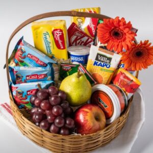 Cesta Café da Manhã Completo com Buquê de Flores e Bombons