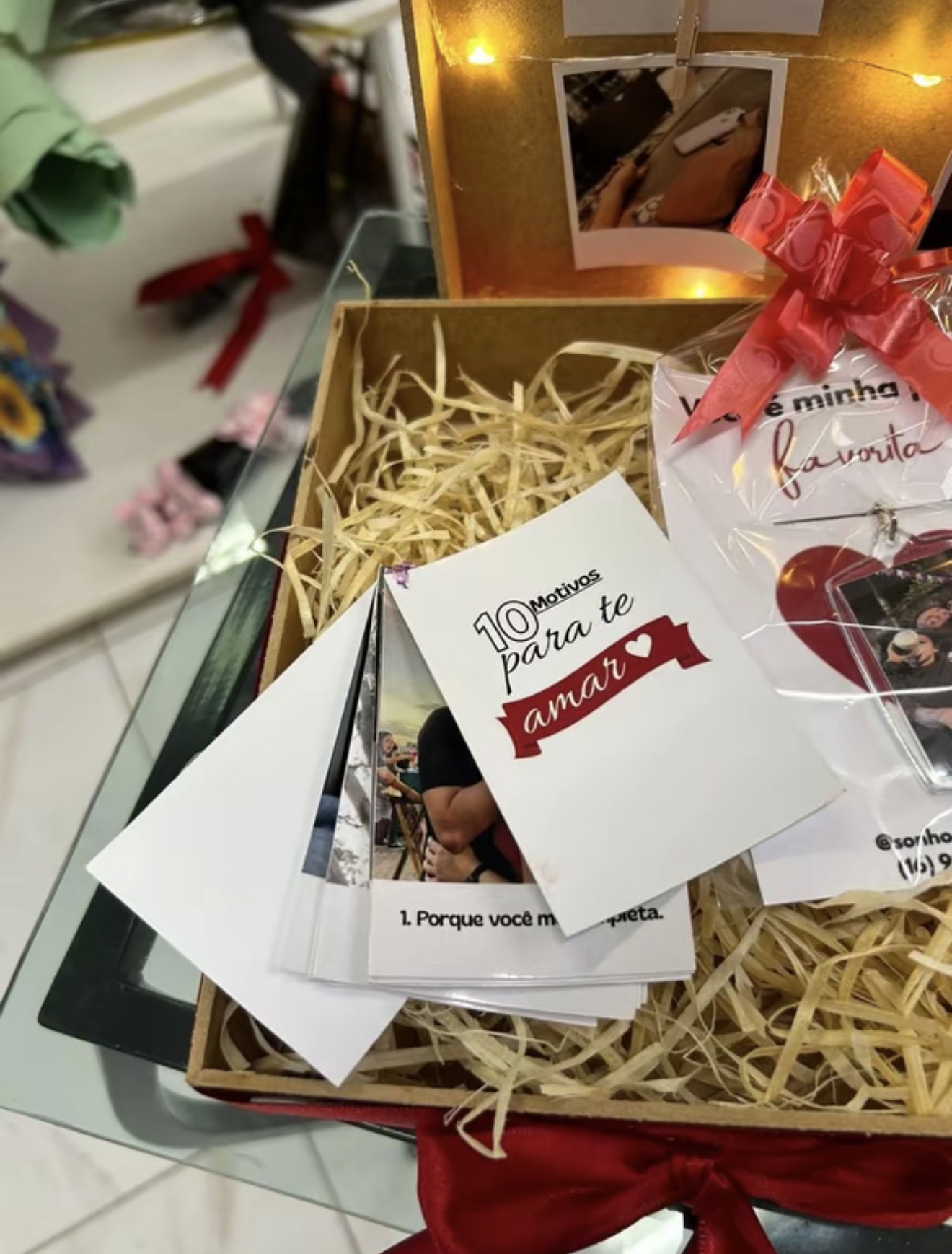 Caixa romantica com fotos,led, chaveiro,10 motivos para te amar