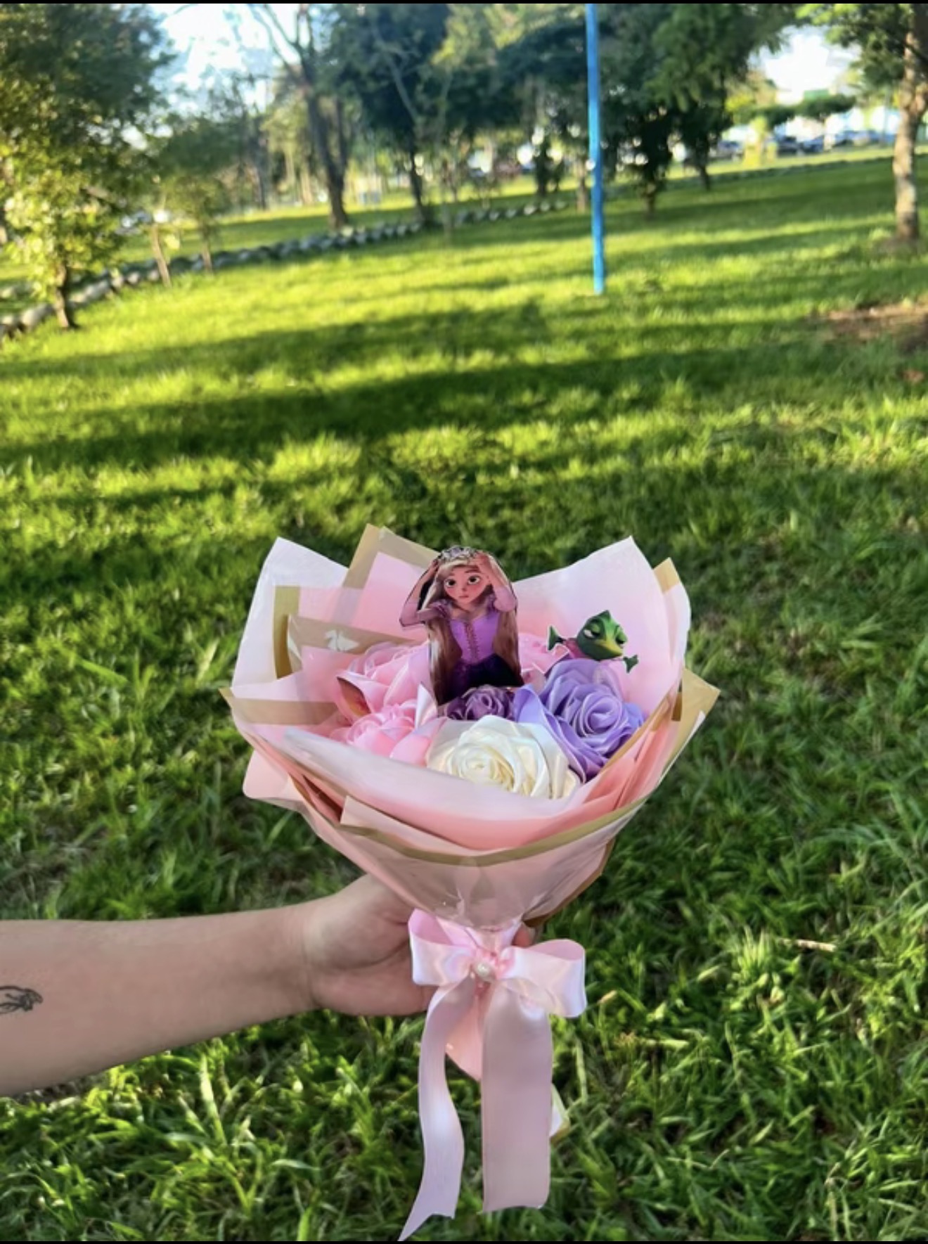 Buquê com 12 Rosas Cor de Rosa Kraft